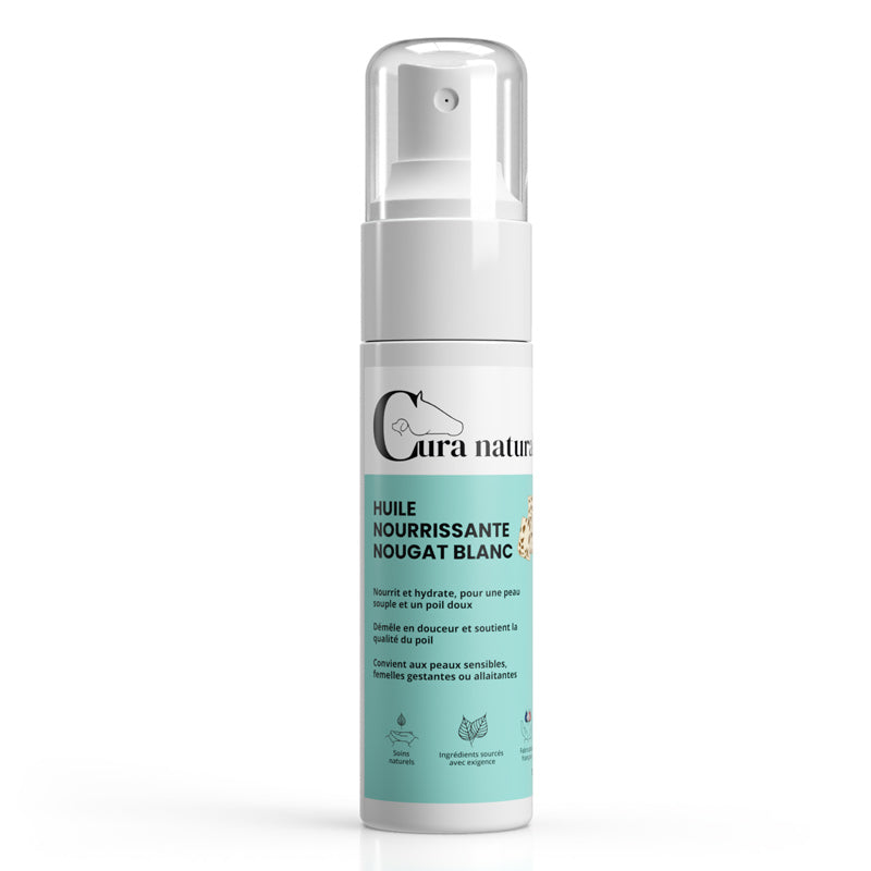 Huile douce et polyvalente, à la délicate senteur Nougat blanc, un soin idéal pour nourrir, hydrater et assouplir la peau, le poil et les crins de votre cheval, même les plus sensibles.